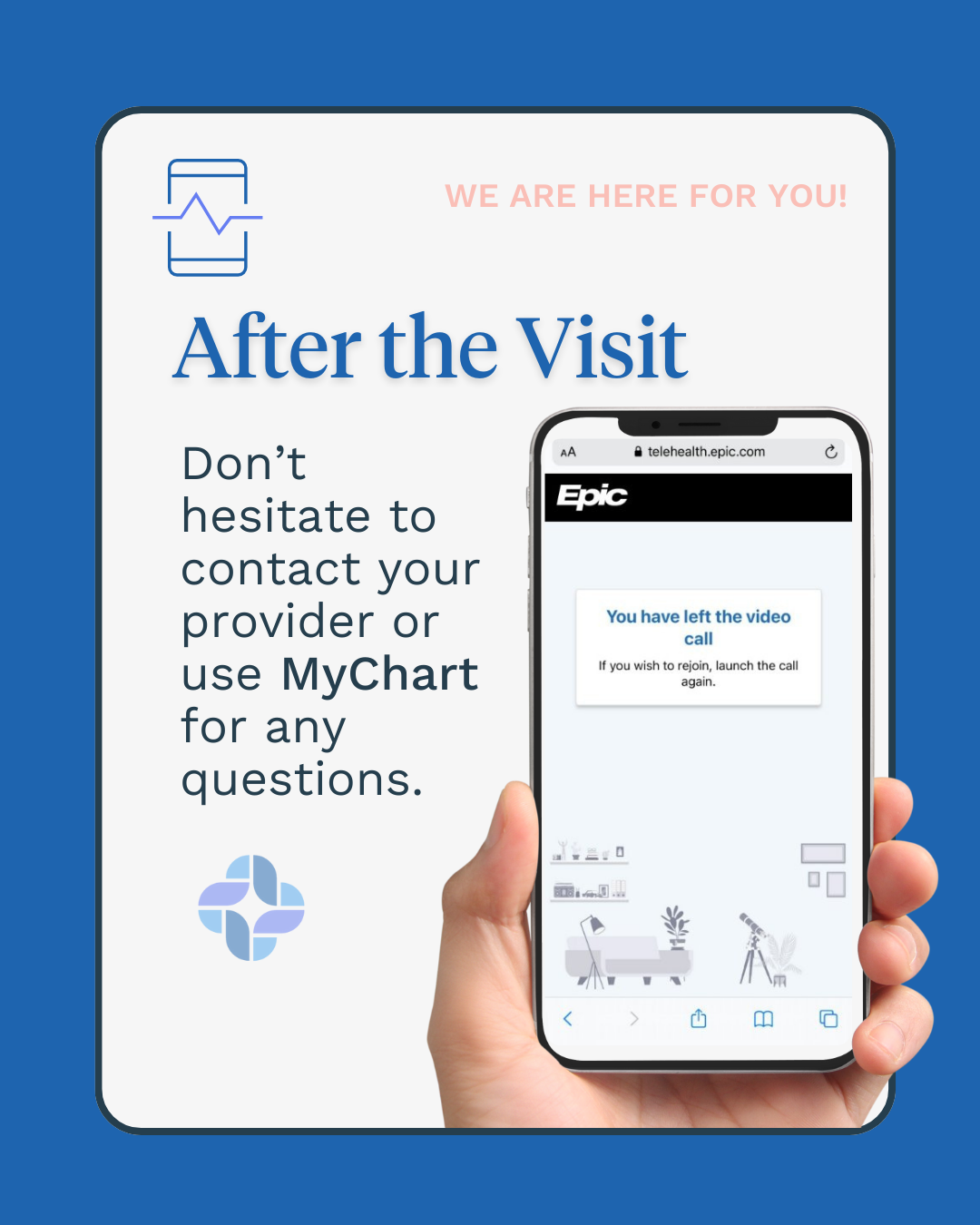 Telehealth virtual visits are now easier than ever! Call us at 617-569-5800 today, or use ماي تشارت to see if a virtual video visit is right for you.