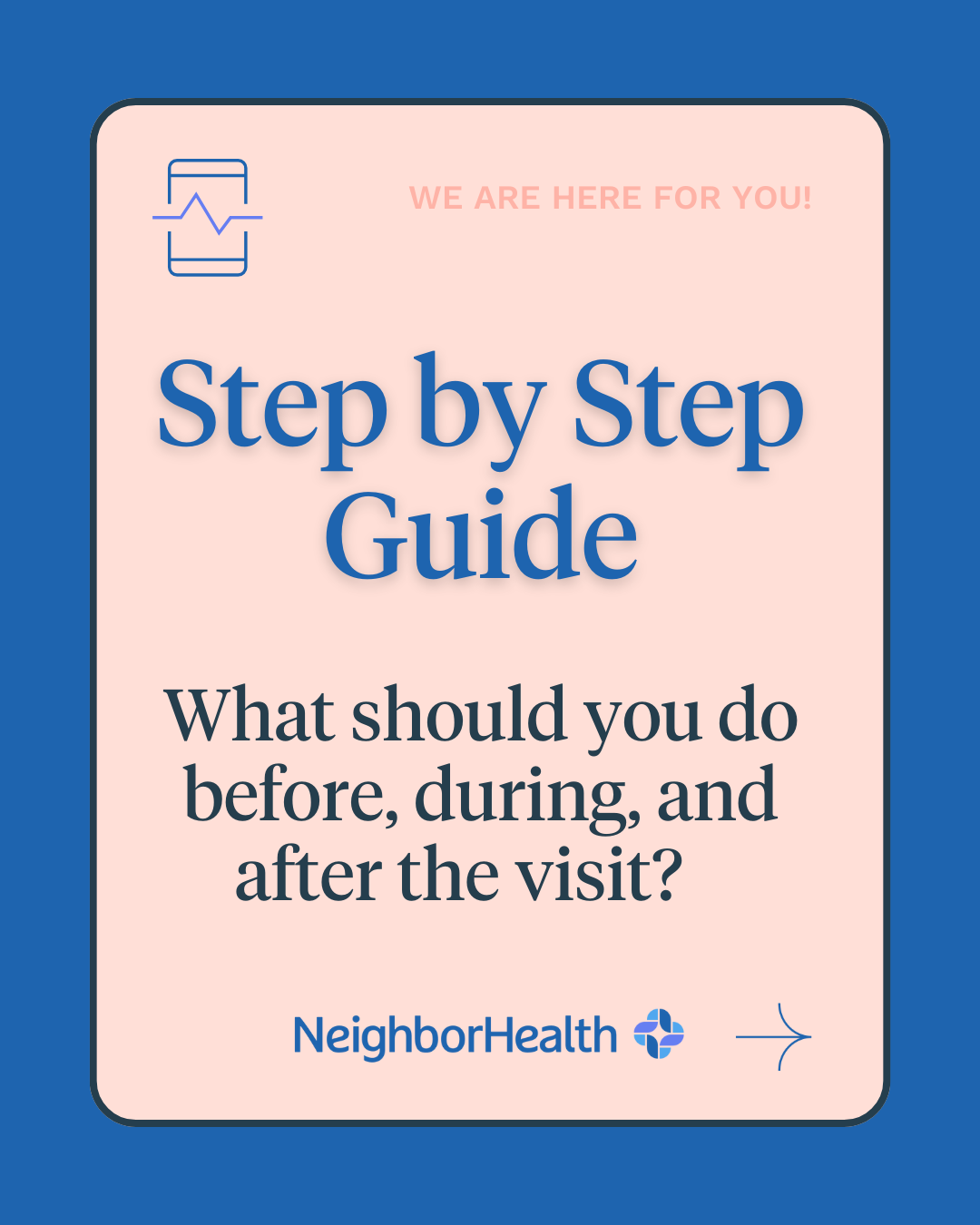NeighborHealth is pleased to provide you with high-quality care from the comfort of your home. You can now schedule a video visit with your doctor for certain appointments and evaluations.